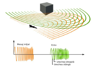Orientarea acustică a creierului este folosită prin ecolocație ca modalitatea de descoperire a plasării și a existenței unor obiecte din drum. Ecolocazarea poate fi pasivă sau activă. Cea pasivă se bazează pe sunete ambientale, iar cea activă se bazează pe emiterea unor unde sonore care dacă întâmpină un obiect, acestea se împrăștie și ricoșează. Asta ajută la calcularea distanței obiectelor, iar vibrația transmisă înapoi oferă informații cu privire la chiar și textura obiectelor.
